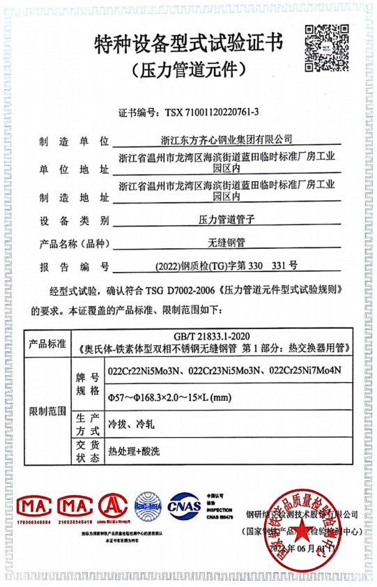 浙江東方齊心以不銹鋼系列產(chǎn)品為主導(dǎo),品種有不銹鋼管、奧氏體不銹鋼管、高溫合金鋼管、雙相不銹鋼管、鎳基合金管、冷凝器用管、U形管、核電管、不銹鋼管件、法蘭、閥門(mén)等。規(guī)格有6-2020x0.8-60mm,Ф16-25長(zhǎng)度可達(dá)33m。公司擁有精密制造鋼管的各類(lèi)機(jī)械設(shè)備25臺(tái)(套),其中各類(lèi)冷軋管機(jī)15臺(tái), 冷拔機(jī)10臺(tái),天然氣熱處理爐2套。 |